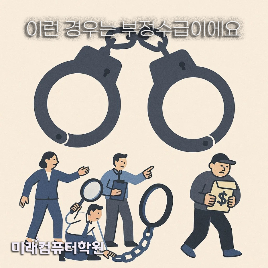 취업 사실·소득 발생 미신고, 이직사유 허위, 구직활동 허위, 사업자등록/영업 숨김, 근로일수·시간 축소 신고, 대리 수급·명의 도용 등은 대표적 부정수급입니다.