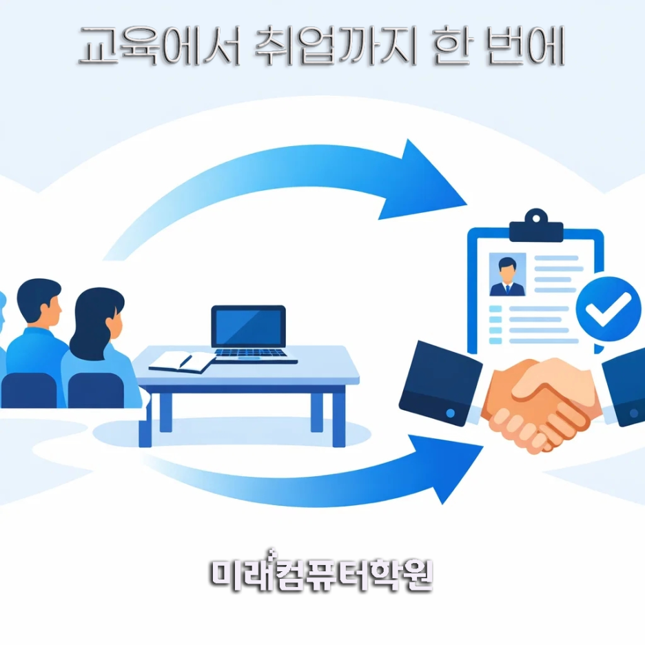 (주)미래인재개발교육원 산하 미래컴퓨터학원(사상점·덕천점)에서는 국비지원 취업교육 과정을 운영하며, 365일 훈련생 모집과 함께 실무 중심 교육을 제공하고 있다. 수료 이후에는 훈련생의 전공과 역량에 맞는 우수 기업체 취업알선을 진행하며, 취업전문상담사가 이력서·자기소개서 첨삭, 면접 컨설팅까지 체계적으로 지원해 교육–취업 연계 효과를 높이고 있다.