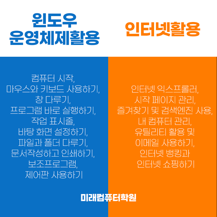 미래컴퓨터학원의 컴퓨터 기초과정은