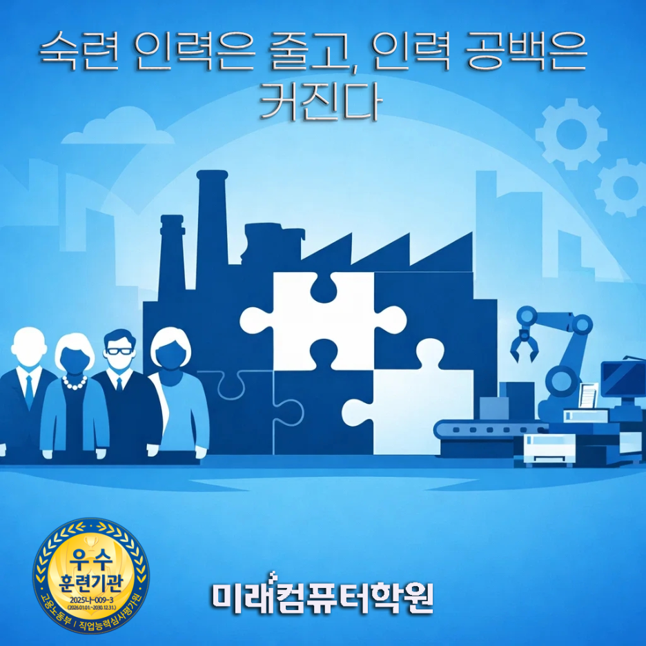 미래컴퓨터학원은 고용노동부가 선정한 우수훈련기관(2014년~2030년)으로, 기계설계, 웹디자인, 회계사무원, 일반사무원, 편집디자인, 영상제작·편집디자인, ERP 등 다양한 직종의 인재를 직업능력개발훈련을 통해 체계적으로 양성하고 있습니다. 훈련 수료 후에는 전담 취업알선 인력이 기업 수요에 맞춘 맞춤형 취업 연계를 진행하며, 다수의 수료생이 청년일자리도약장려금 등 정부 채용지원 요건을 충족합니다. 청년 인재 채용을 계획 중인 기업에서는 언제든지 문의하시면 상세한 안내를 받으실 수 있습니다.