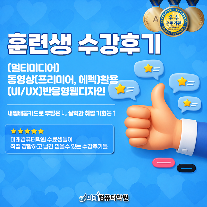 (멀티미디어) 동영상(프리미어, 에펙)활용과 (UI/UX)반응형웹디자인을 함께 다루는 과정 수강후기를 모아봤어요.