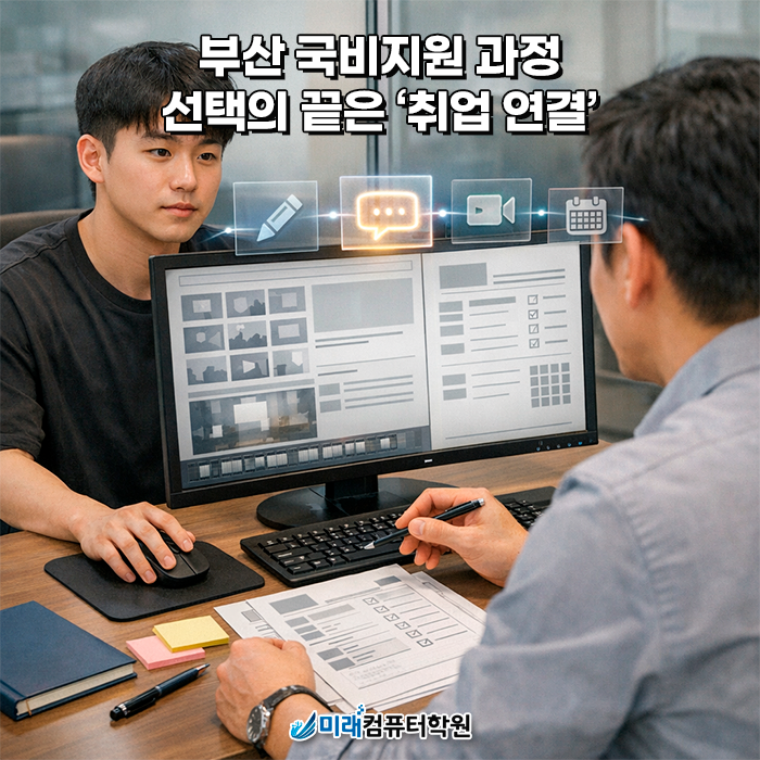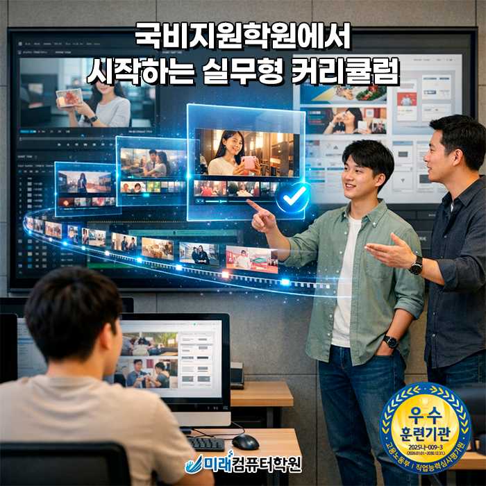 #부산국비지원 #부산내일배움카드 #내일배움카드 #국민내일배움카드 #국비지원학원 #부산국비지원학원 #부산내일배움카드학원 #컴퓨터학원 #부산컴퓨터학원 #미래컴퓨터학원 #부산영상편집학원 #영상편집학원 #AI영상편집 #영상편집과정 #영상제작 #콘텐츠제작 #프리미어프로 #애프터이펙트 #모션그래픽 #자막편집 #컷편집 #색보정 #사운드편집 #썸네일제작 #디지털마케팅 #광고콘텐츠제작 #SNS콘텐츠 #포트폴리오제작 #취업상담 #취업준비
