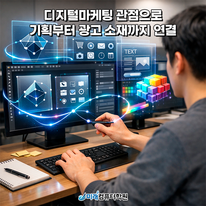 디지털마케팅을 함께 배우면 영상이 ‘작업물’에서 ‘성과를 내는 콘텐츠’로 바뀝니다.