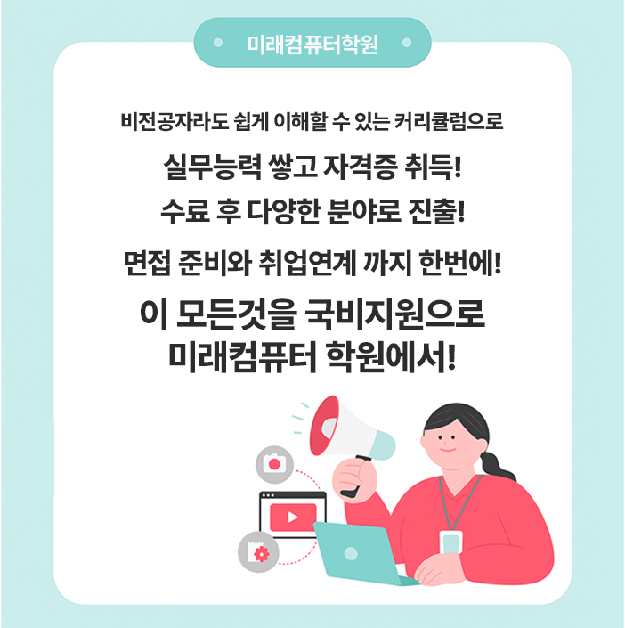취업할 수 있는 좋은 기회! 부산 미래컴퓨터학원과 함께 시작해봅시다.