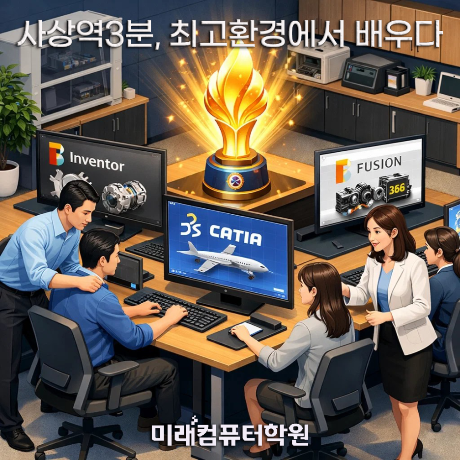 ☑️ “인벤터·카티아·오토캐드와 3D프린터까지 배워 실무에 도움됐습니다.”