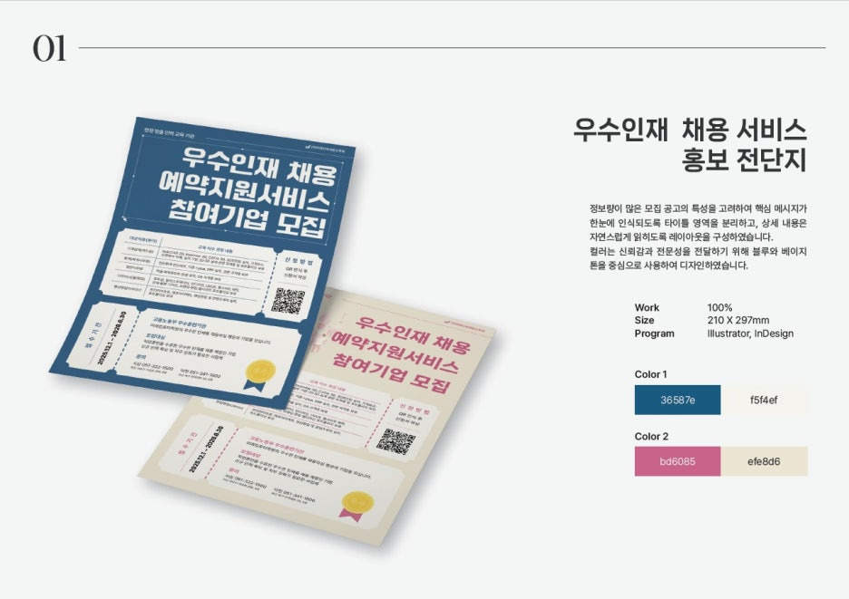 수료 후에는 이런 접지형 결과물로 편집 구성력을 보여줄 수 있고, 실제 홍보물 제작까지 연결되는 느낌이 강합니다.