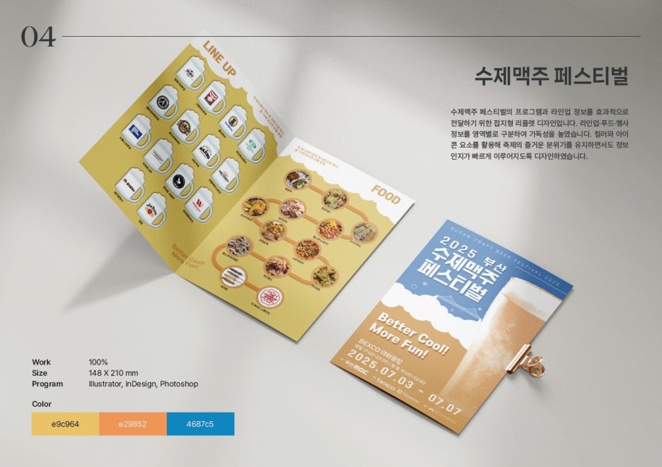 완성했을 때 성취감이 큽니다. 행사 리플렛은 라인업, 푸드, 일정 같은 정보가 많아도