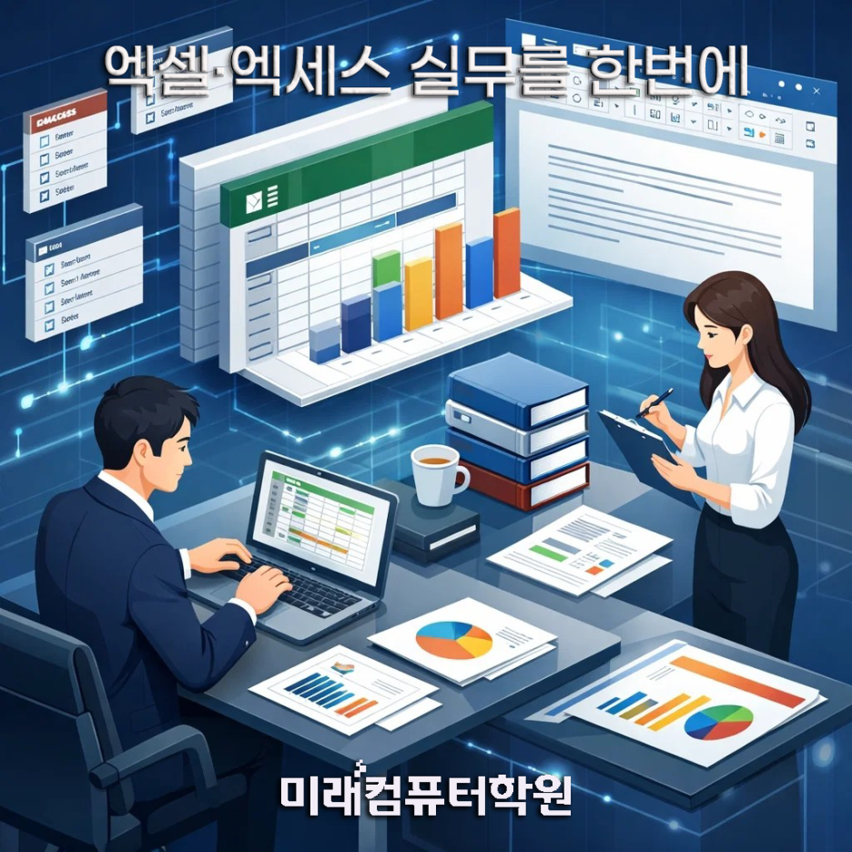 엑셀·엑세스 실무 역량까지 갖추면 공공기관, 총무, 전산사무 분야 취업 경쟁력이 확실히 달라집니다.