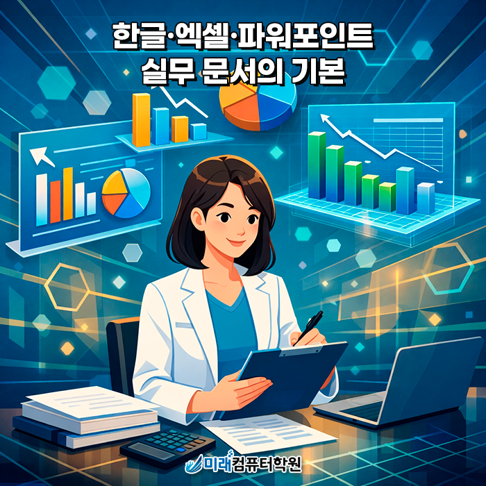 보고서 작성, 표 정리, 데이터 입력, 발표 자료 구성까지 실무에서 바로 활용 가능한 수준을 목표로 진행됩니다.