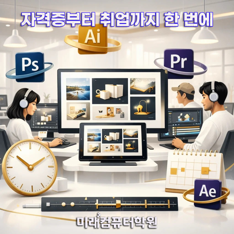 포토샵·일러스트·프리미어·에펙 + 영상편집 + 웹디자인 + 자격증 + 취업까지 한 번에!