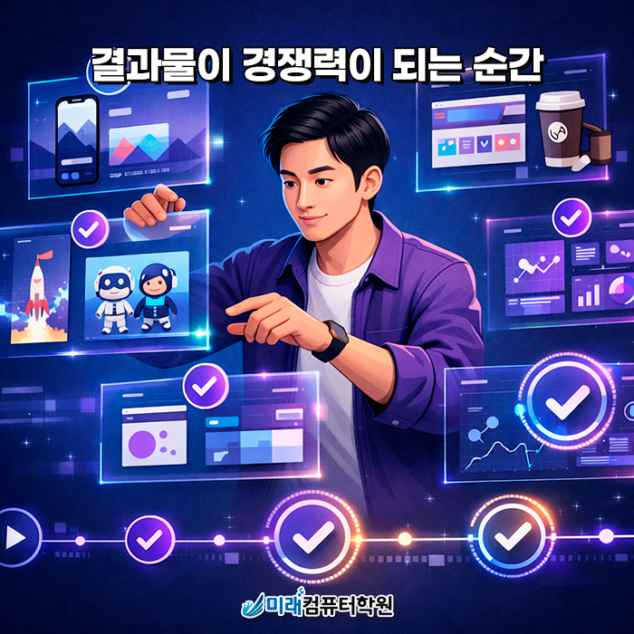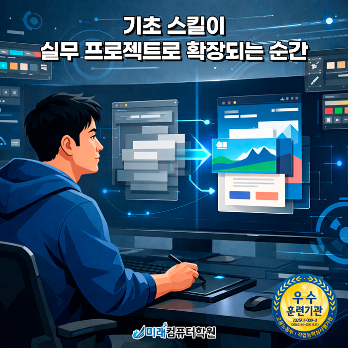 고용노동부 선정 우수훈련기관 미래컴퓨터학원이 여러분의 실력을 결과로 증명합니다.