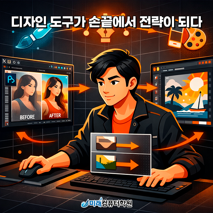 포토샵과 일러스트 실무부터 쇼핑몰관리까지, 지금 시작하면 커리어가 달라집니다.