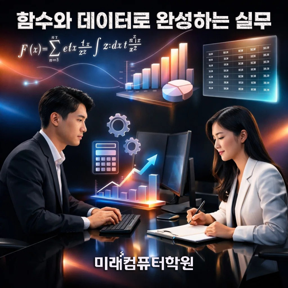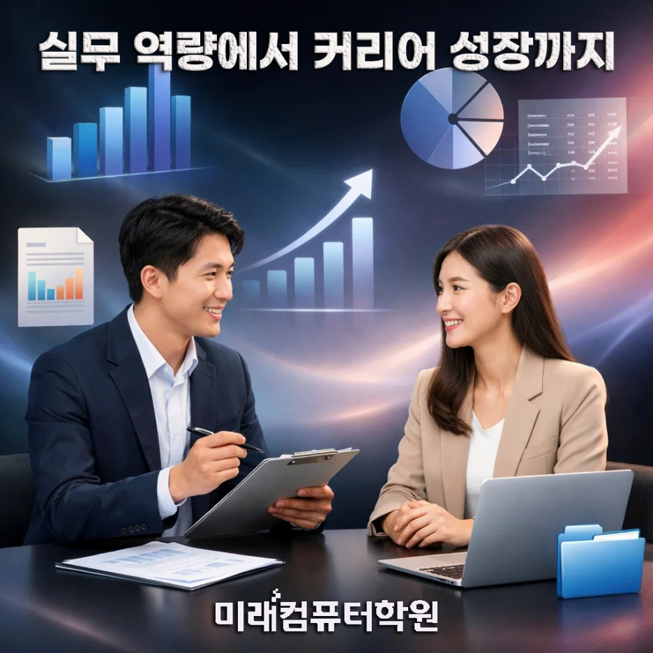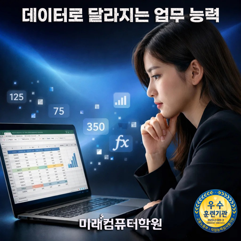 재직자는 업무 속도 향상, 실업자는 사무직 취업 경쟁력 확보를 위해 컴퓨터활용능력 2급 자격증을 준비하기 시작합니다. 이 과정은 단순 시험 대비가 아닌 실무에서 바로 사용하는 엑셀 능력을 만드는 데 초점을 둡니다.