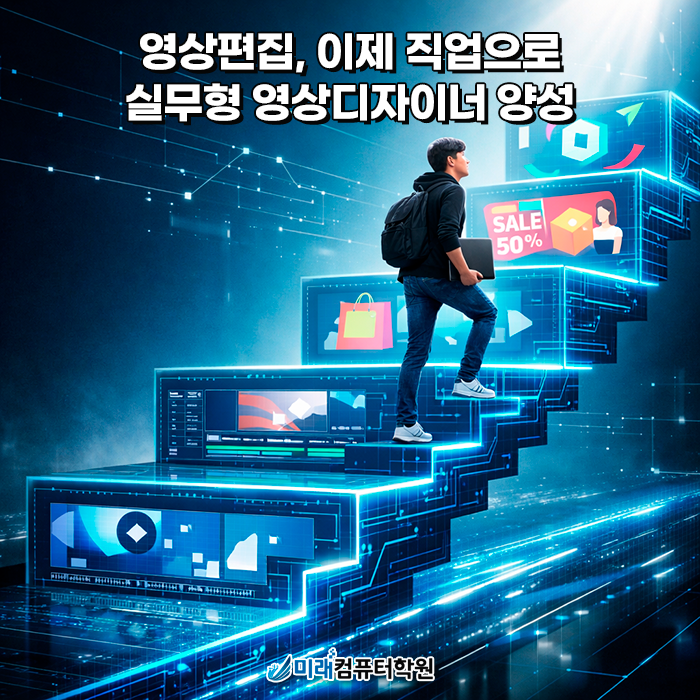 사상역 4번 출구 도보 10미터, 접근성 좋은 위치와 쾌적한 실습 환경에서 실무 중심 교육을 경험해보세요. 경험 많은 훈련교사가 직접 지도하며, 고용노동부 선정 우수훈련기관으로서 높은 취업률과 체계적인 취업 연계 시스템을 갖춘 미래컴퓨터학원에서 당신의 첫 광고 포트폴리오를 완성해보시기 바랍니다. 배우는 순간이 취업으로 이어지는 곳, 미래컴퓨터학원에서 시작하십시오.