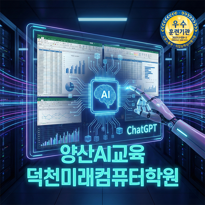 #양산AI국비교육 #양산AI교육 #양산컴퓨터학원 #양산엑셀학원 #덕천미래컴퓨터학원 #덕천역컴퓨터학원 #양산직장인교육 #양산챗GPT교육 #양산챗GPT활용 #양산엑셀자동화 #양산업무자동화 #양산사무문서자동화 #양산스마트워크 #양산엑셀실무 #양산AI활용 #양산챗지피티 #퇴근후AI공부 #덕천직장인야간반 #직장인엑셀AI #근로자AI국비교육 #재직자역량강화 #스마트일잘러 #취준생스펙 #스펙업 #양산국비지원무료교육 #양산국비지원학원 #국민내일배움카드 #양산내일배움카드학원 #양산국민취업지원제도 #양산직장인실무교육