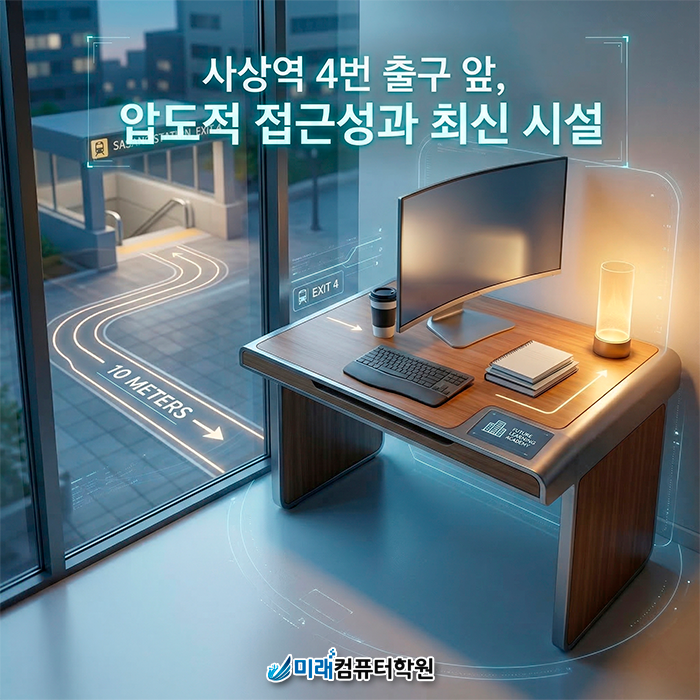 미래컴퓨터학원은 부산 지하철 2호선 사상역 4번 출구에서 나오자마자