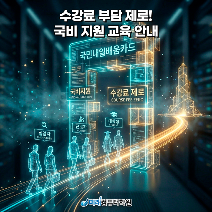 수강을 원하시거나, 교육에 대해 궁금하신 점이 있으시다면 미래컴퓨터학원에 문의해주시길 바랍니다.