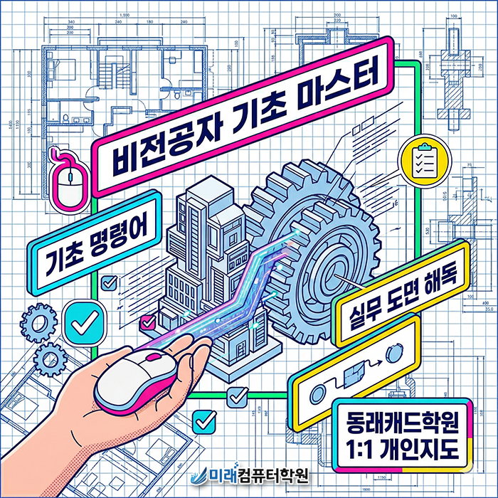 2026년 상반기, 기술직 취업의 가장 확실한 무기를 장착하고 싶으신가요? 모든 산업의 설계와 제조의 시작점인 AutoCAD(캐드)를 마스터하면 비전공자도 탄탄한 전문직 커리어를 시작할 수 있습니다. 동래와 인접하여 교통이 편리하고 1:1 밀착 지도로 유명한 덕천미래컴퓨터학원의 'AutoCAD(2D,3D) 실무 및 자격증 취득' 과정을 상세히 소개해 드립니다.