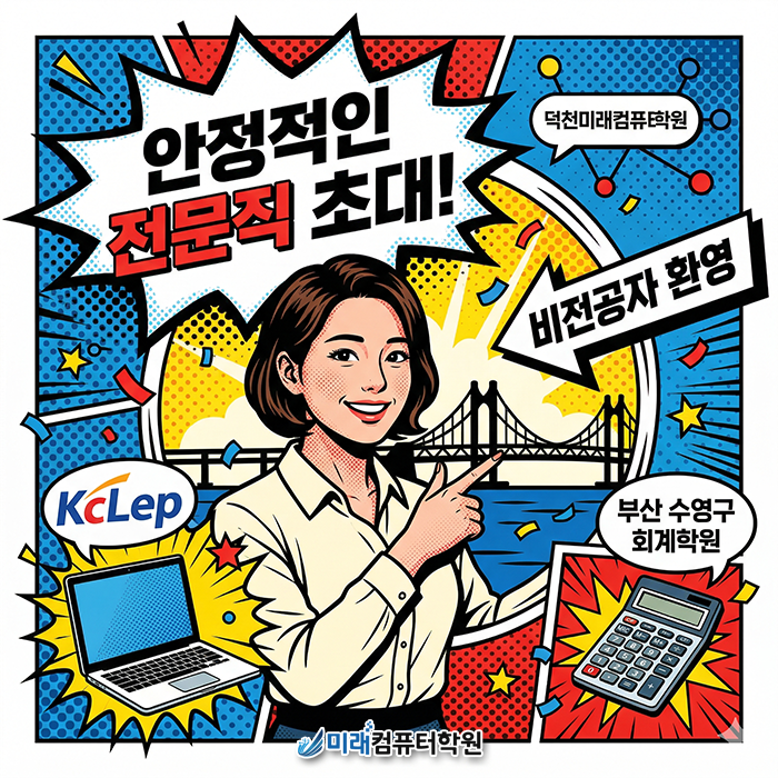 #부산수영구회계학원 #수영구회계학원 #부산회계학원 #덕천미래컴퓨터학원 #덕천회계학원 #수영구회계학원 #전산회계1급 #전산세무2급 #FAT1급 #TAT2급 #더존 #KcLep #회계자격증 #세무자격증 #회계사무원 #사무직취업 #비전공자환영 #국민내일배움카드 #내일배움카드회계 #국비지원 #국비무료교육 #국민취업지원제도 #합격률90% #6월6일시험 #시험일정대비 #한국세무사회고사장 #취업알선 #부산취업 #자기계발 #자격증취득