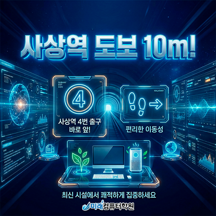 수강을 원하시거나, 교육에 대해 궁금하신 점이 있으시다면 미래컴퓨터학원에 문의해주시길 바랍니다.