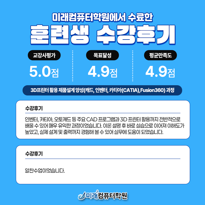[미래컴퓨터학원] 수료생들이 직접 경험하고 남긴 믿을 수 있는 후기들을 소개합니다.