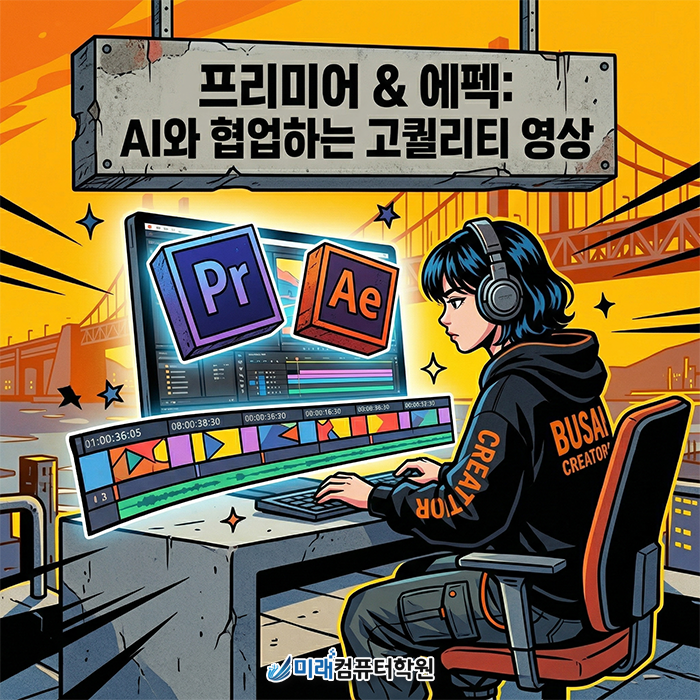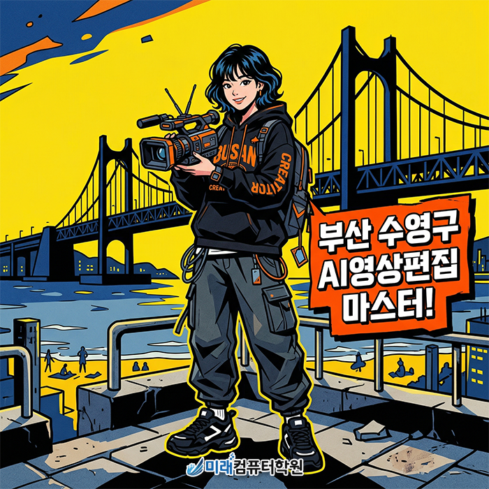 #부산수영구AI영상편집 #수영구AI영상편집 #광안리영상편집 #수영동영상편집 #망미동영상편집 #수영구국비지원 #부산AI학원 #부산디자인학원 #덕천미래컴퓨터학원 #수영구디자인학원 #생성형AI #Gemini #NanoBanana #Veo3 #AI영상제작 #AI디자이너 #AI워커 #인공지능영상편집 #포토샵 #일러스트레이터 #프리미어프로 #애프터이펙트 #피그마 #Figma #UIUX디자인 #모션그래픽 #국민내일배움카드 #전액무료교육 #훈련장려금 #포트폴리오준비