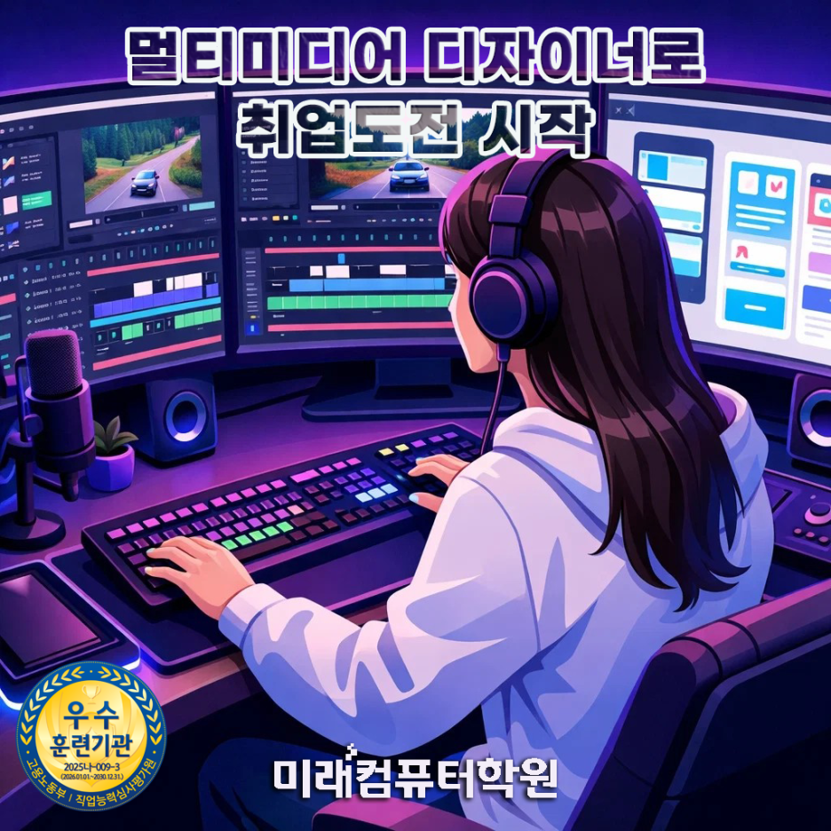 👉 멀티미디어콘텐츠제작전문가 자격증 + 포트폴리오 + 취업까지 한 번에 완성하는 국비지원 과정, 지금 바로 시작해 보세요.