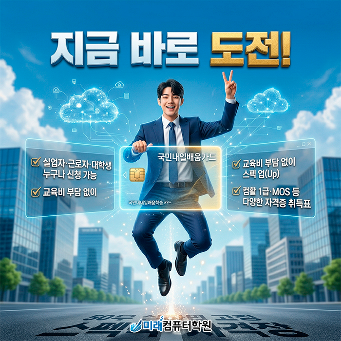 수강을 원하시거나, 교육에 대해 궁금하신 점이 있으시다면 미래컴퓨터학원에 문의해주시길 바랍니다.