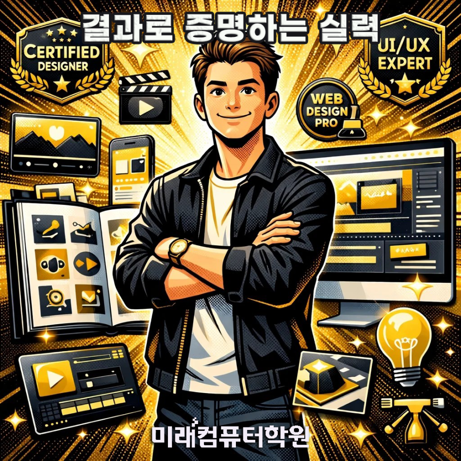 영상편집, 디자인, 웹콘텐츠까지 통합적으로 배우는 과정으로, 기업이 요구하는 실무형 인재 양성이 핵심입니다. 자격증 + 포트폴리오 + 실무능력을 동시에 확보할 수 있습니다.
