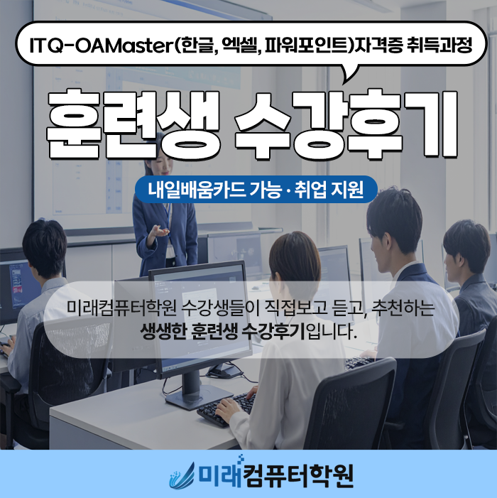 오늘은 저희 학원에서 ITQ-OAMaster(한글, 엑셀, 파워포인트) 자격증 과정을 수강하신 훈련생들의