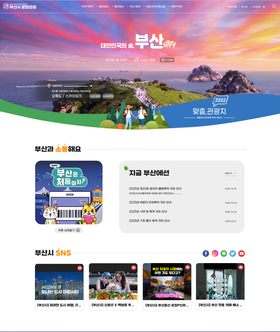두 번째는 부산과의 소통·SNS 연계 콘텐츠 페이지입니다.