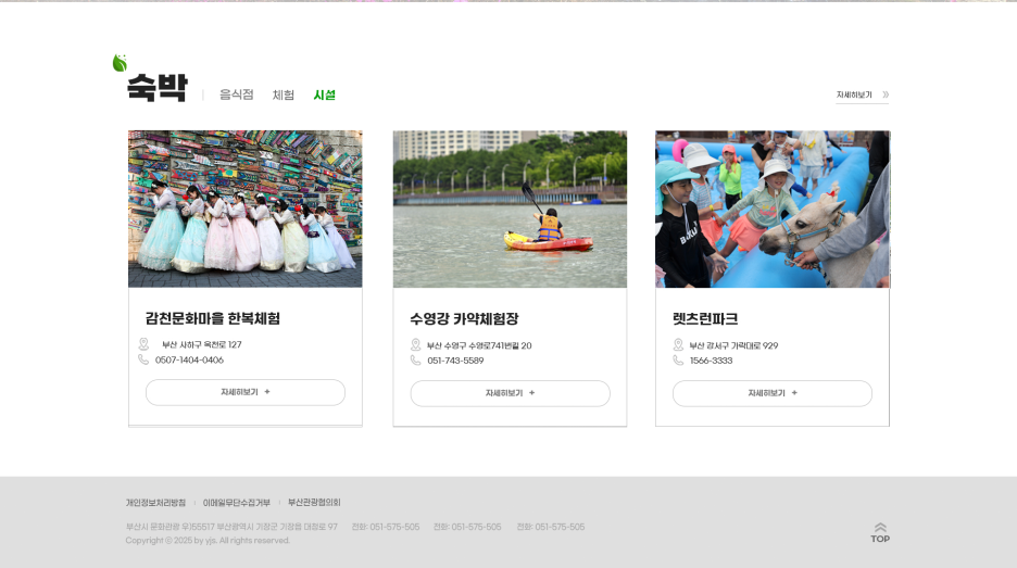 마지막은 부산 체험·숙박 정보 페이지입니다.