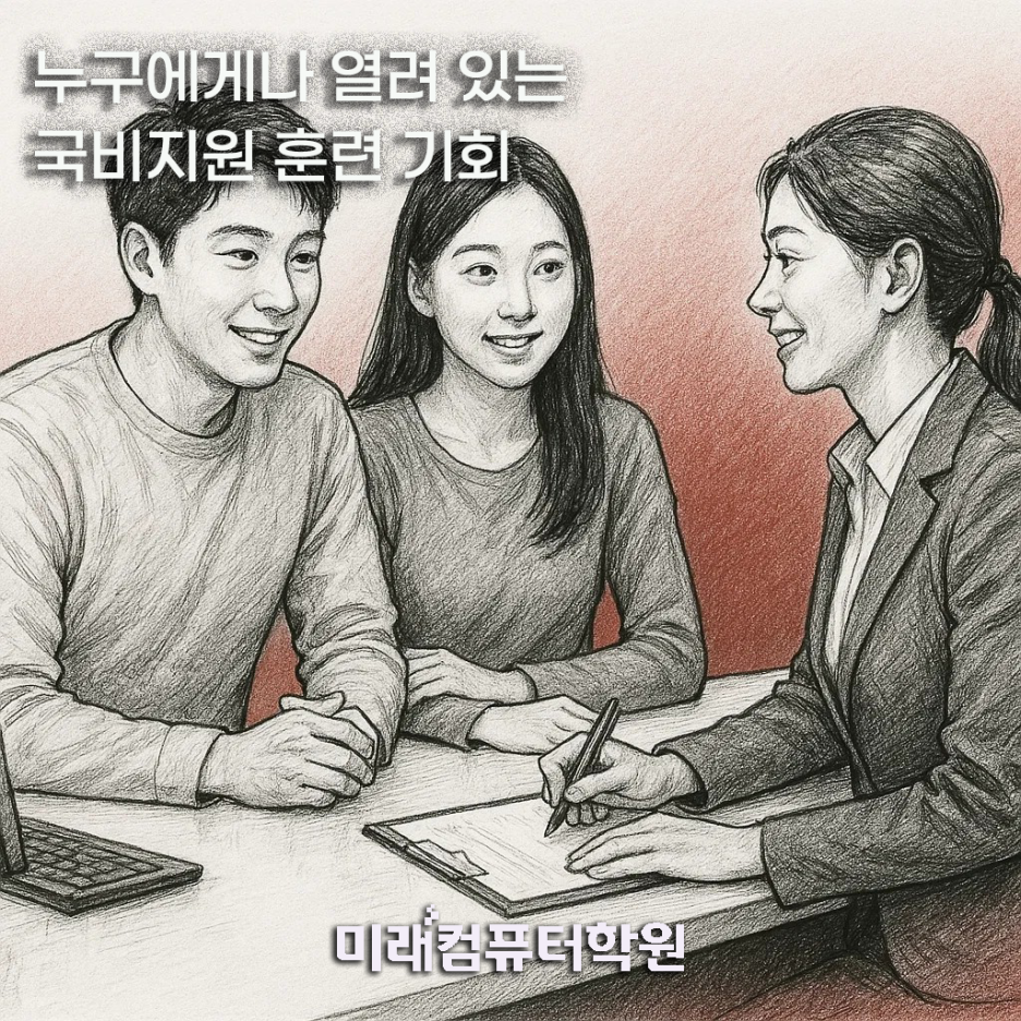 안녕하세요 미래컴퓨터 학원입니다! 오늘은 국민내일배움카드에 대한 신청 자격, 신청 방법 등에 대해 최신...