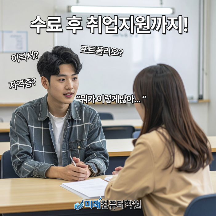 수강을 원하시거나, 교육에 대해 궁금하신 점이 있으시다면 미래컴퓨터학원에 문의해주시길 바랍니다.